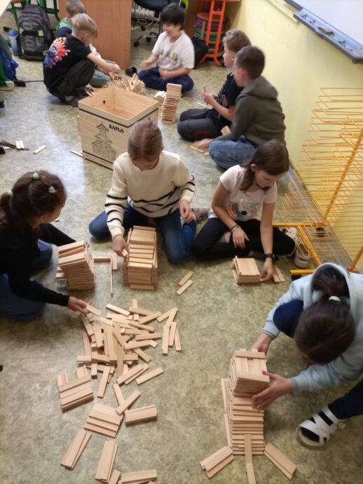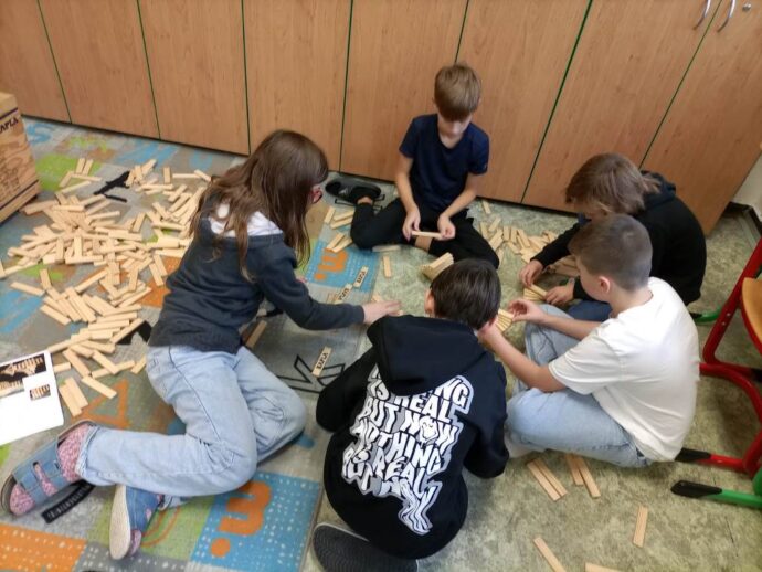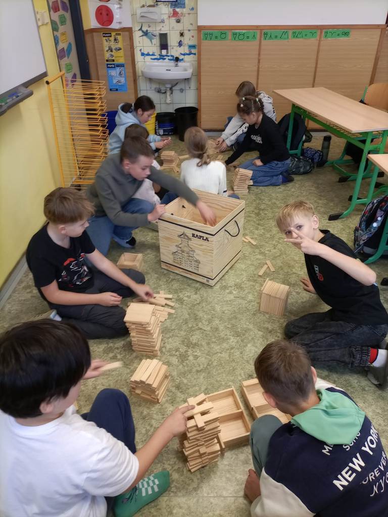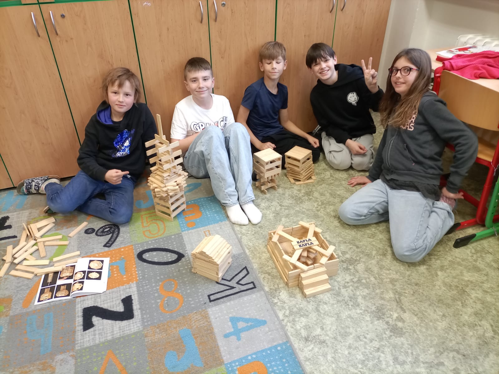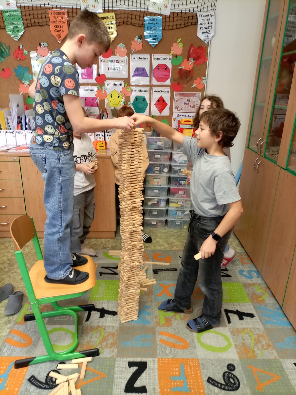 Dne 20. listopadu si žáci 5. A v hodině pracovní výchovy vyzkoušeli práci se stavebnicí Kapla. Ve čtyřech skupinách se pustili do stavění nejrůznějších konstrukcí – od jednoduchých věží až po propracované stavby.