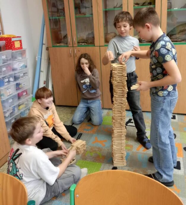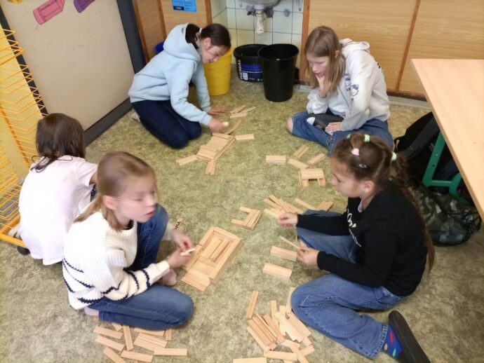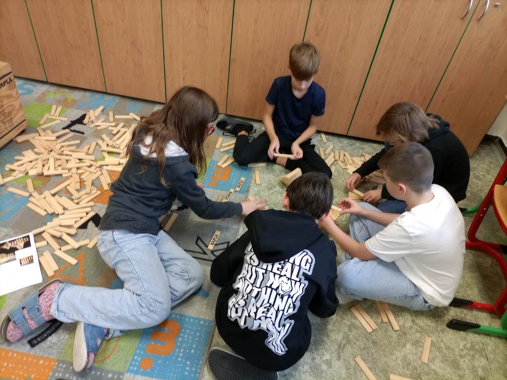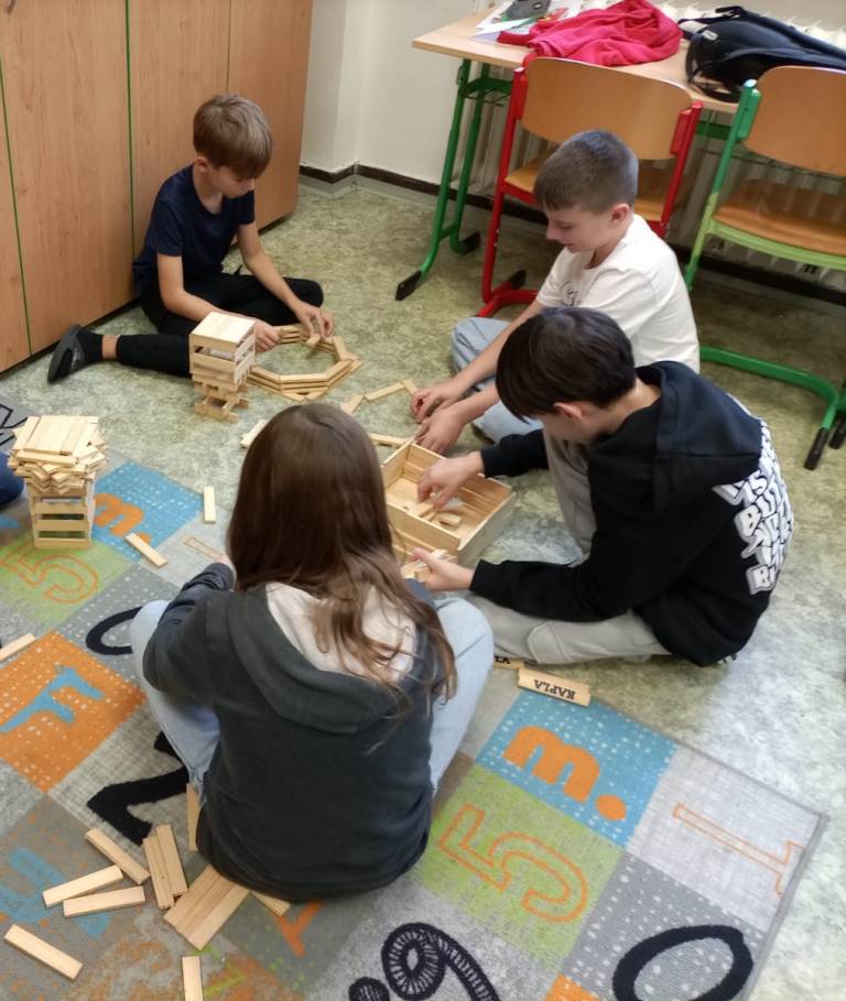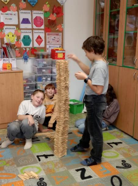 Aktivita byla skvělou příležitostí procvičit spolupráci, trpělivost, šikovnost i kreativitu. Každá skupina hledala vlastní postup, jak dosáhnout co nejzajímavější nebo nejvyšší a stabilní stavby, a výsledky byly opravdu působivé.