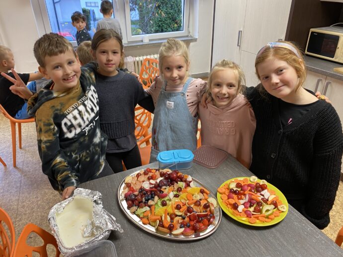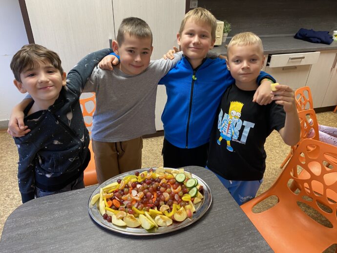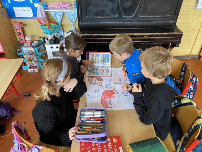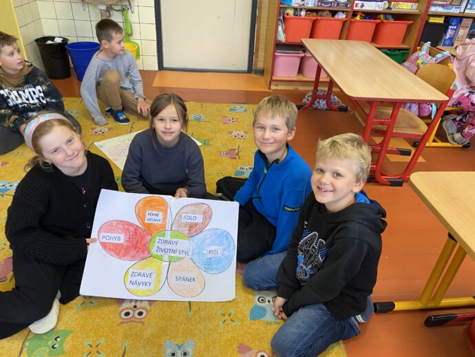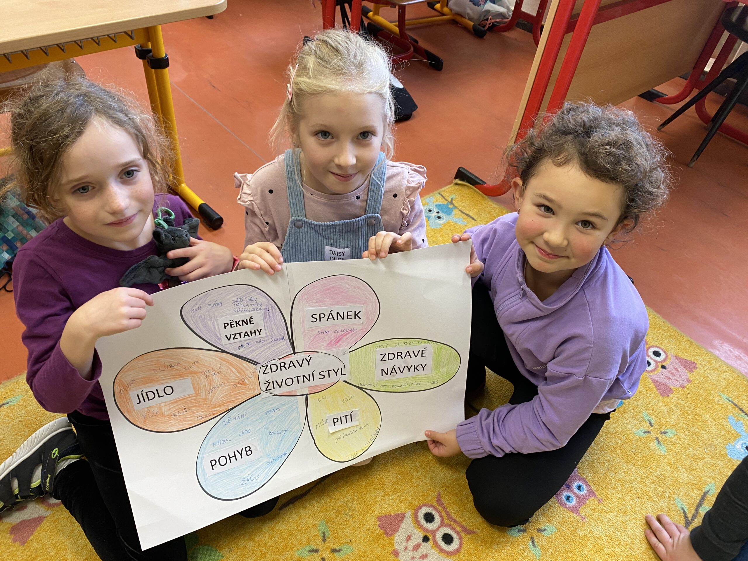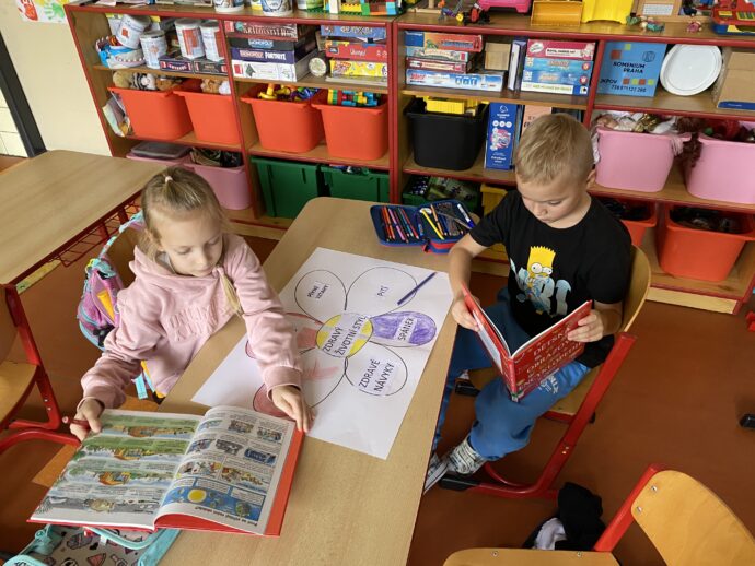 V letošním školním roce jsme se zaměřili na zdravý životní styl. Každý den jsme ve skupinách zpracovávali nějaké téma – jídlo, pití, zdravé návyky, pohyb a pěkné vztahy, informace děti hledaly také v encyklopediích. Děkujeme rodičům za podporu a přísun kvalitního ovoce a zeleniny.