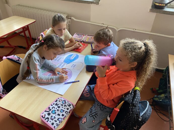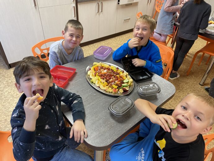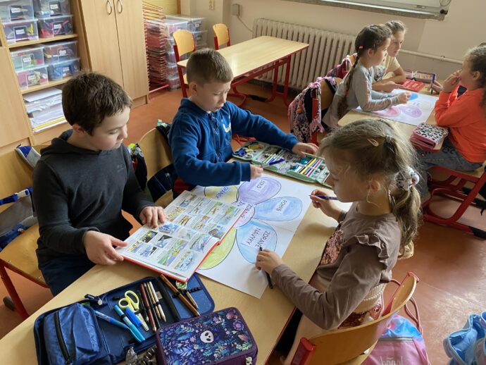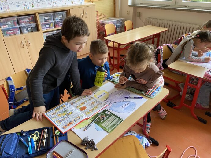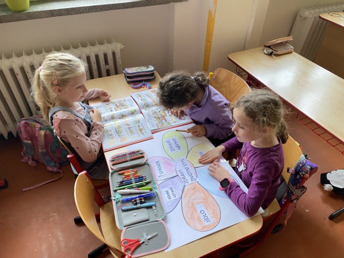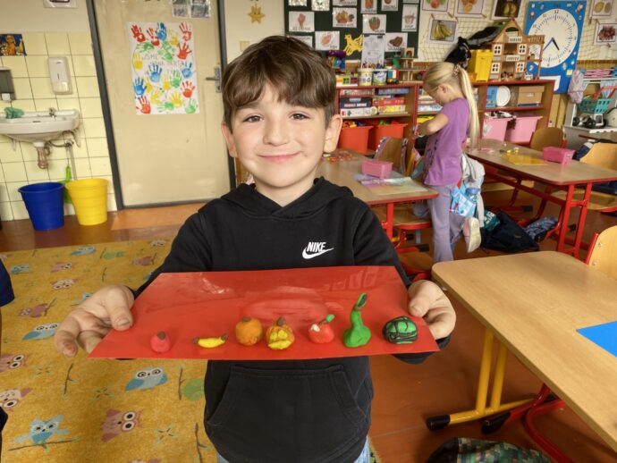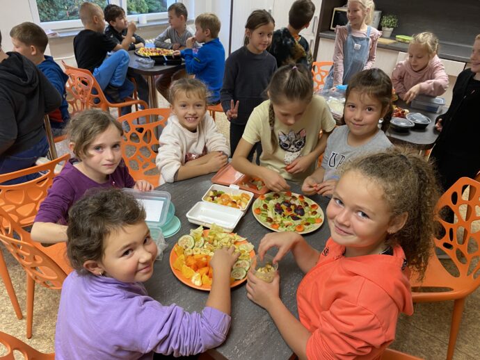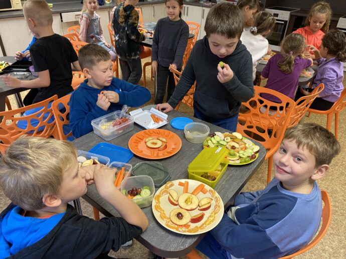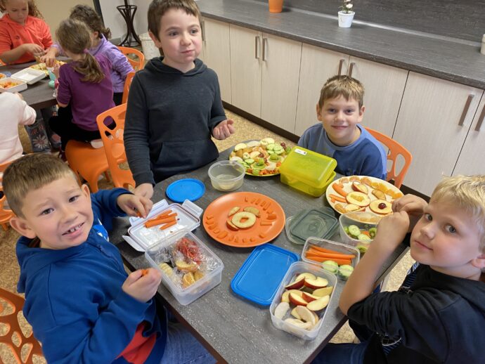 V letošním školním roce jsme se zaměřili na zdravý životní styl. Každý den jsme ve skupinách zpracovávali nějaké téma – jídlo, pití, zdravé návyky, pohyb a pěkné vztahy, informace děti hledaly také v encyklopediích. Děkujeme rodičům za podporu a přísun kvalitního ovoce a zeleniny.