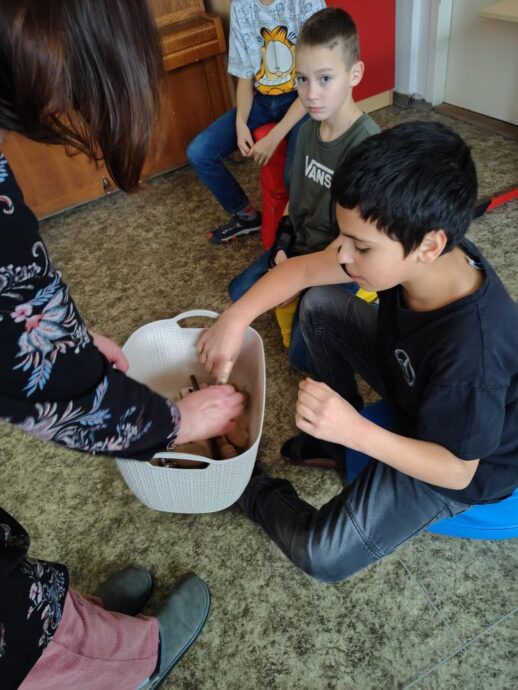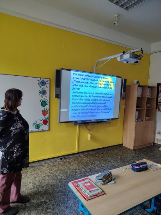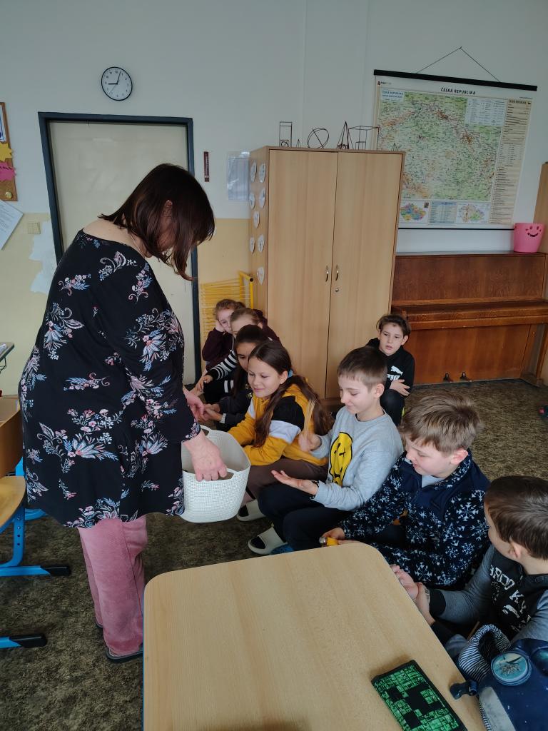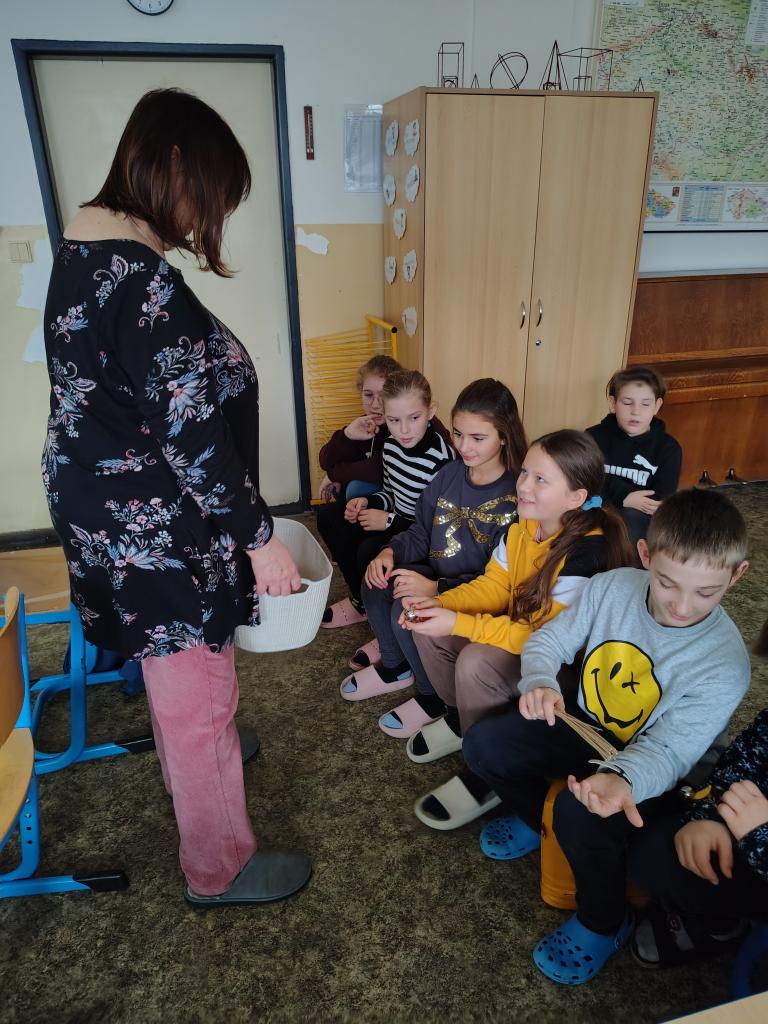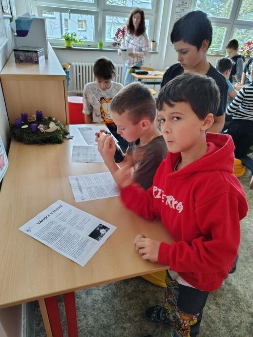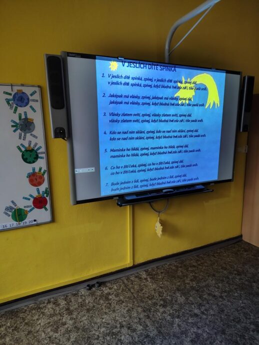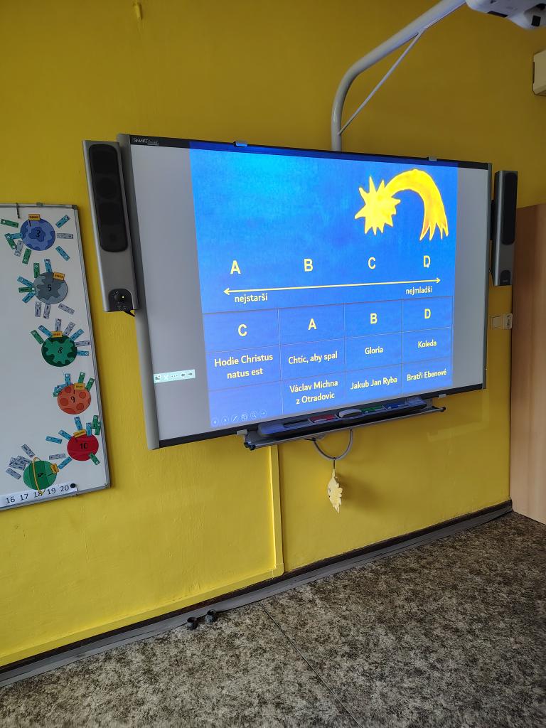 Navštívila nás paní katechetka a představila nám Vánoce v hudbě. Děti poznávaly, ze které země vánoční píseň pochází a řadily vánoční písně podle stáří. Také si vyzkoušely doprovodit vánoční koledu na hudební nástroje. Bylo to příjemné navození vánoční atmosféry.
