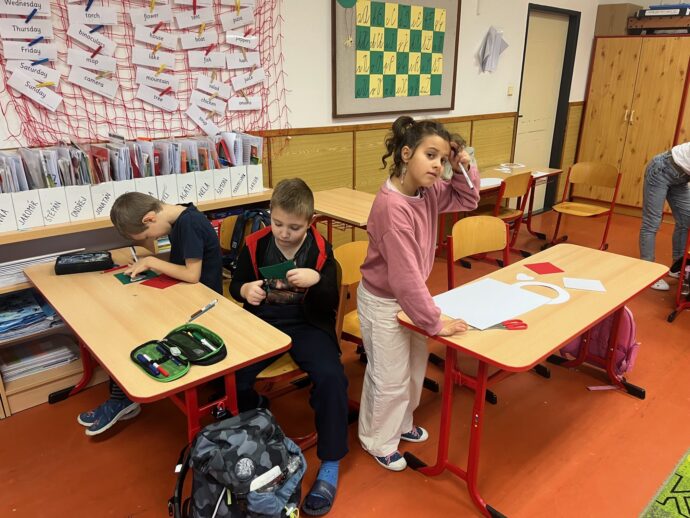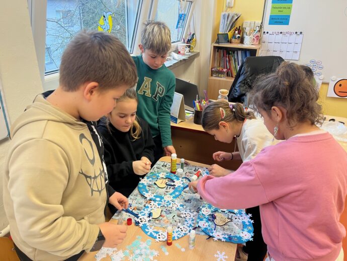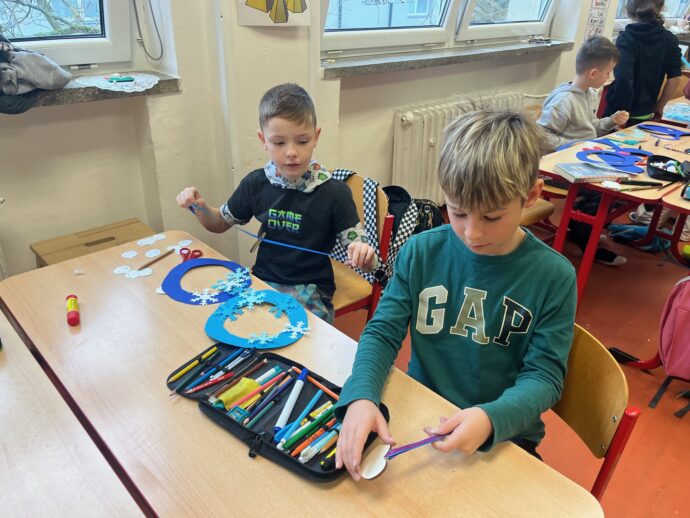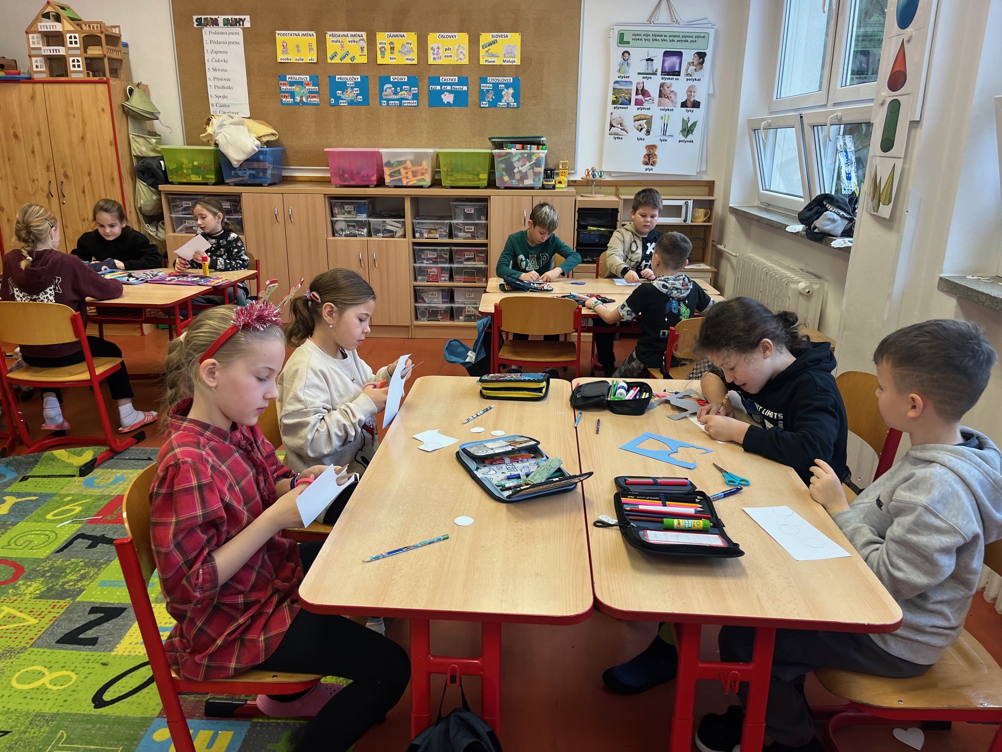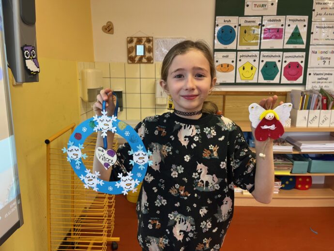 Práce na vánoční jarmark byla v plném proudu. Stříhání, lepení a zdobení nebralo konce. Výsledek přijďte zhodnotit v úterý na vánočním jarmarku. 🙂