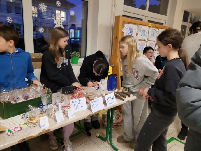 Letošní vánoční jarmark se naší třídě vydařil. Kromě dekorace, kterou jsme tvořili během vánočních dílen, přinesli někteří žáci na vánoční jarmark k prodeji další rozmanité rukodělné výrobky a také upečené dobroty, které vznikly zčásti za pomoci a podpory rodičů. Ti nás přišli podpořit i při prodeji, za což jim velmi děkujeme.