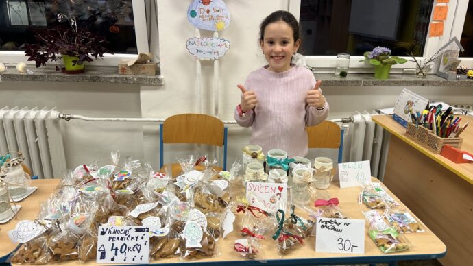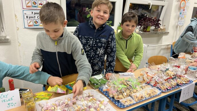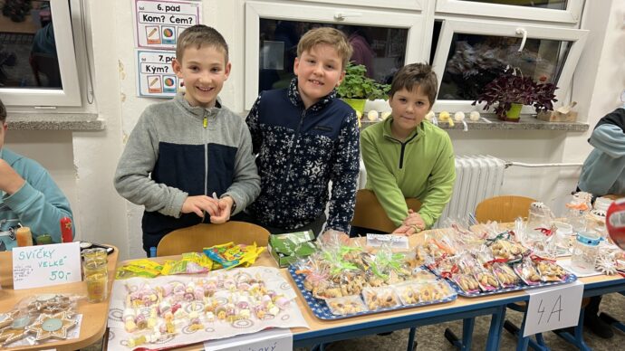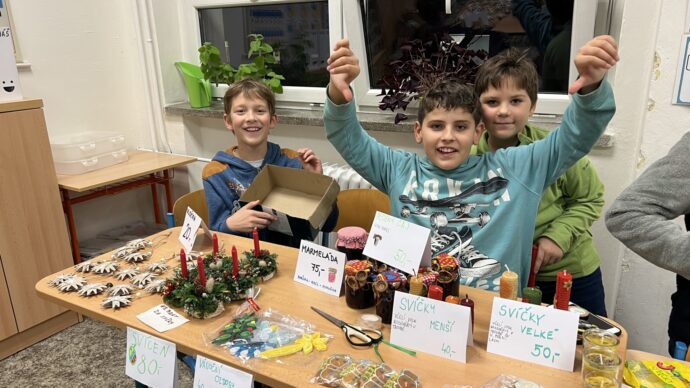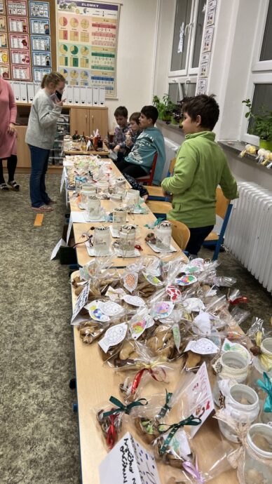 Některé děti z naší třídy si pak dokonce samostatně připravily další výrobky doma, aby jsme pro naši třídu získali pěkné finanční prostředky a mohli si pak dopřát společně i něco málo „navíc“. Ráda bych poděkovala všem dětem za snahu při vánočních dílnách. Chtěla bych ale také moc poděkovat dětem, které investovaly čas, materiál i svůj zápal do výroby dárečků navíc. Chtěla bych poděkovat rodičům za podporu (za pomoc při výrobě dárků navíc, za zakoupení výrobků na jarmarku). A další poděkování patří i skvělým prodejcům. Děti se zápalem nabízely výrobky a prodej jim radostně ubíhal. Nakonec jsme vybrali pěknou částku, za kterou rodičům i dalším příznivcům moc děkujeme. Společně se pak domluvíme, jak prostředky využijeme. A nakonec děkujeme všem, kdo se jarmarku zúčastnili, za pěknou a pohodovou předvánoční atmosféru.
