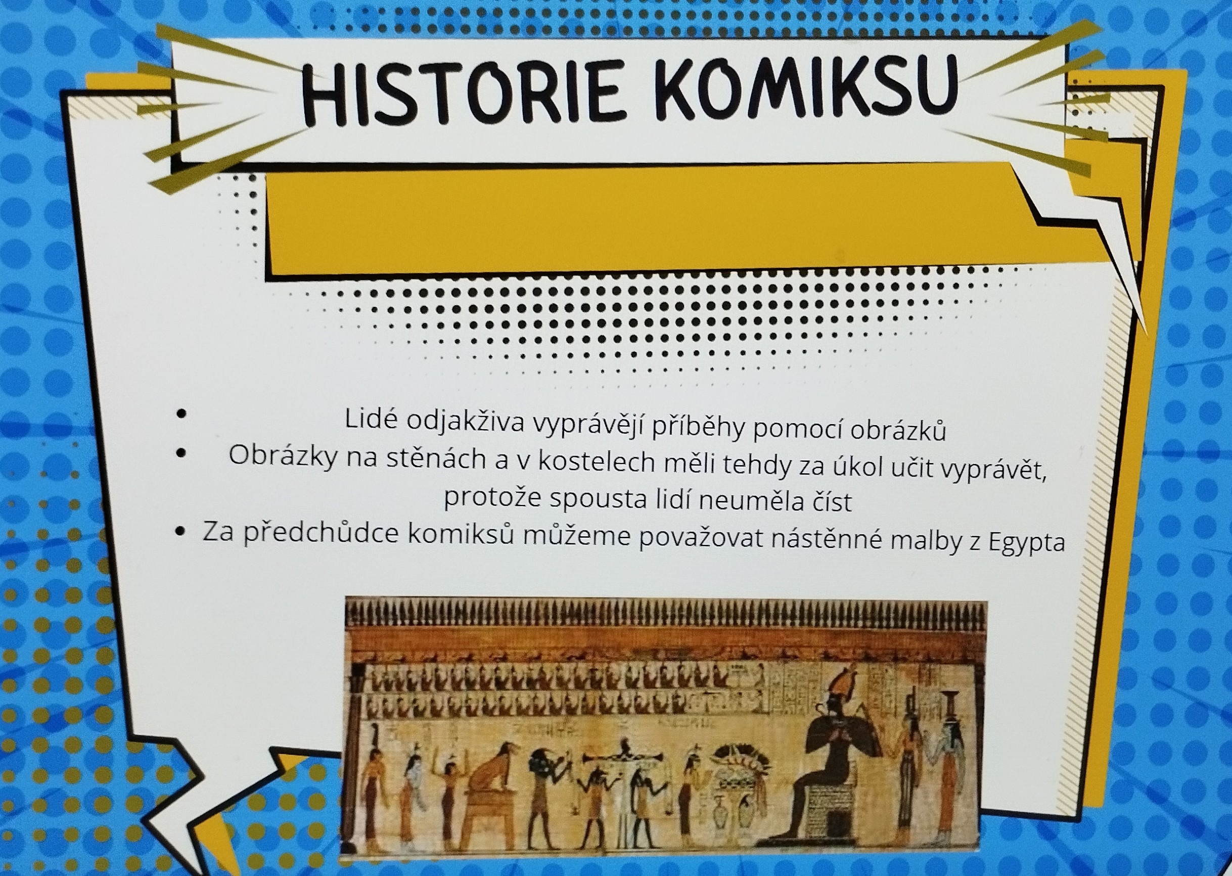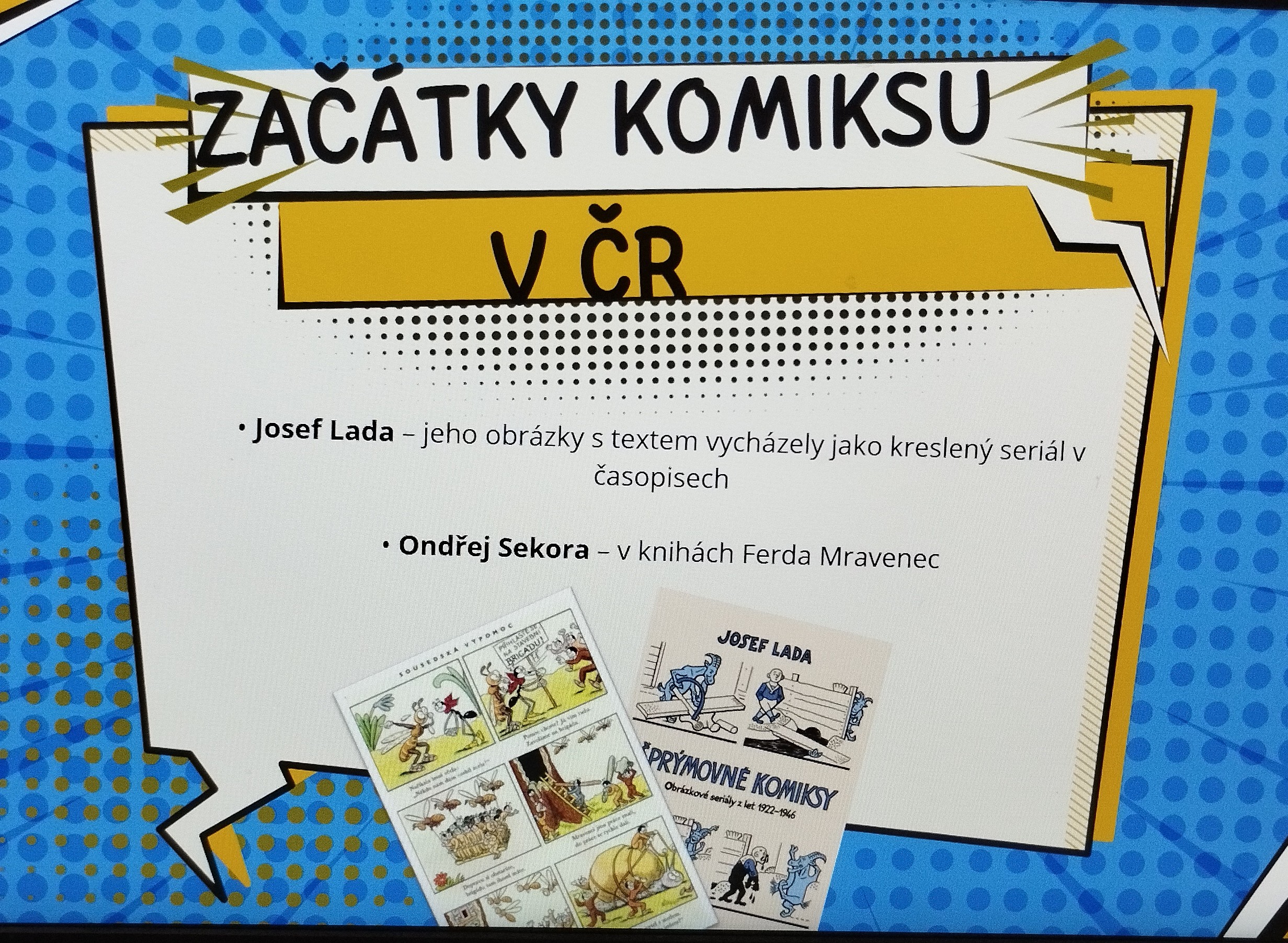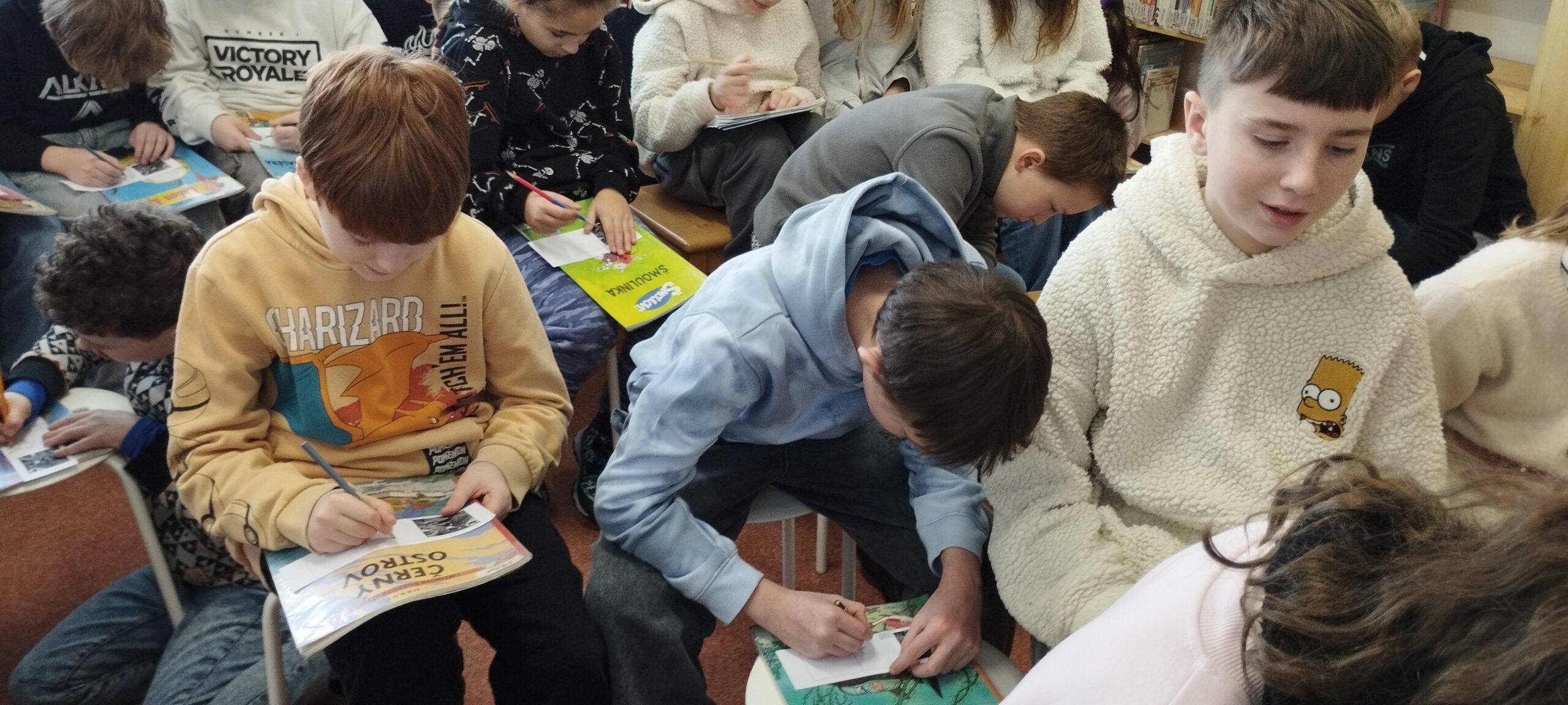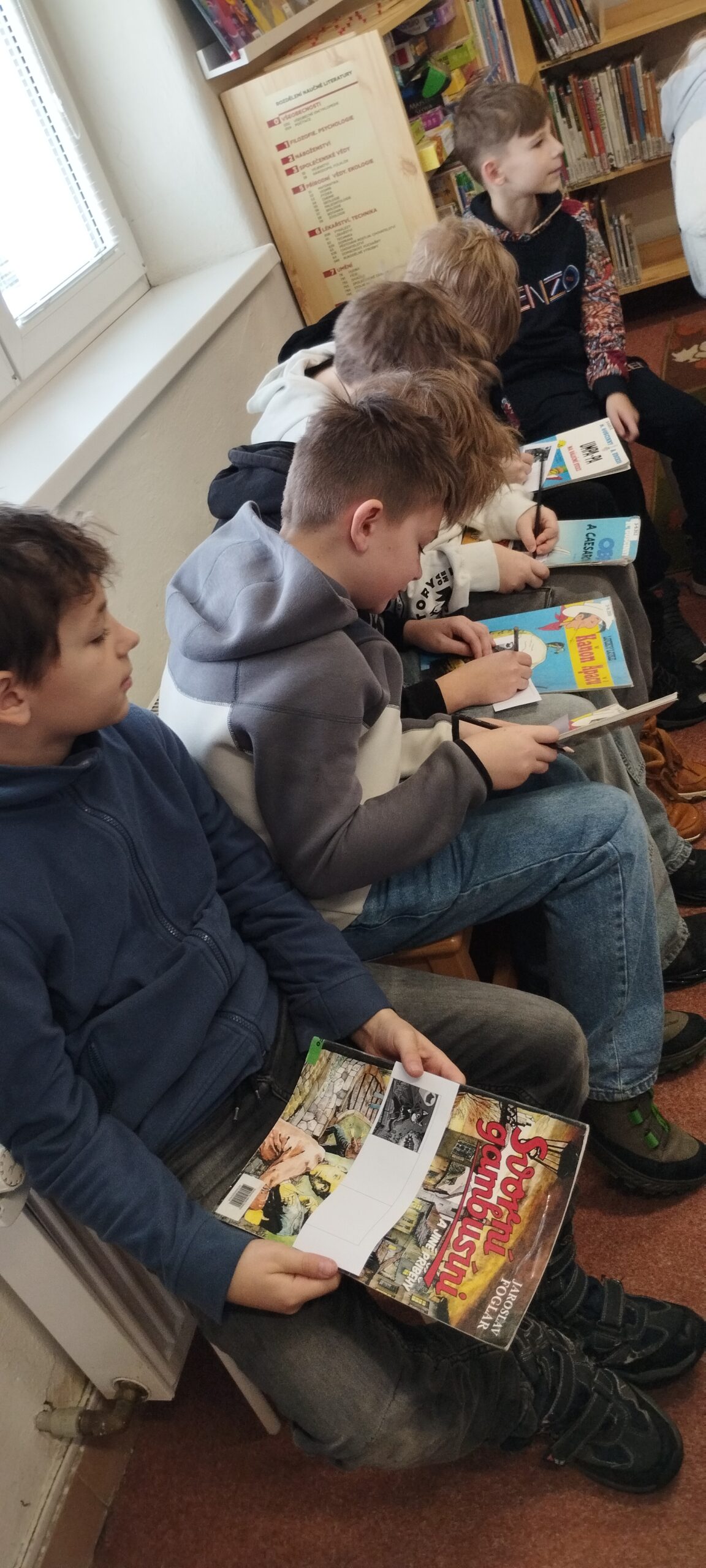 16. února jsme se vypravili do místní pobočky knihovny města Ostravy. Beseda s názvem „Ve světě bublin“ objasnila žákům základní rysy komiksu, co vyjadřují bubliny a co je to komiksový strip. Dověděli se, který komiks byl úplně první na světě, co jsou manga, kdo z českých literárních tvůrci vytvářel komiksy. Na konci besedy si žáci vyzkoušeli, jak se tvoří komiksový strip.