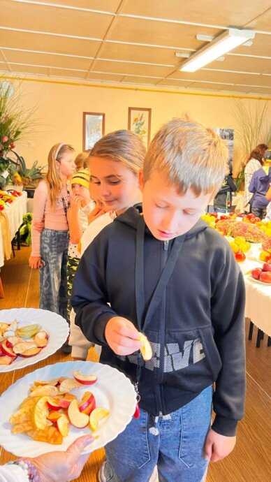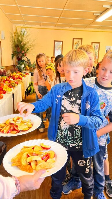V pátek 19. září jsme navštívili výstavu ovoce v klubu zahrádkářů. Obdivovali jsme voňavá jablka, netradiční druhy zeleniny i krásnou keramiku. Nechyběla ochutnávka a milé povídání se starobělským sadařem panem Tony Skřipčákem.