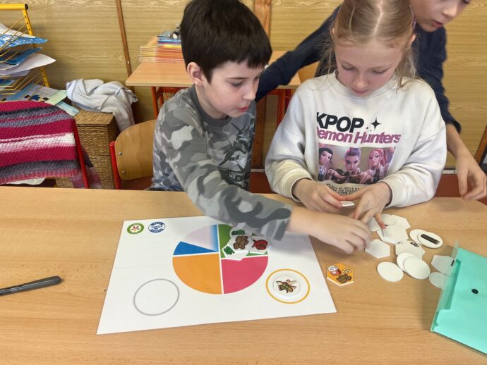 Besední den pokračoval programem Zdravá pětka. O jídle jsme se již bavili mnohokrát, ale dnes jsme se například dozvěděli, že nejvyváženější jídelníček máme ve školní jídelně. To jsme se tedy divili. 🙂 Díky hrám v týmech jsme si ještě více upevnili znalosti o jídle a zdravých potravinách. Že je ořech jako mozek, že krev čistí červená řepa, že…. Kdo by chtěl vědět ještě něco více, může juknout na ZDE.