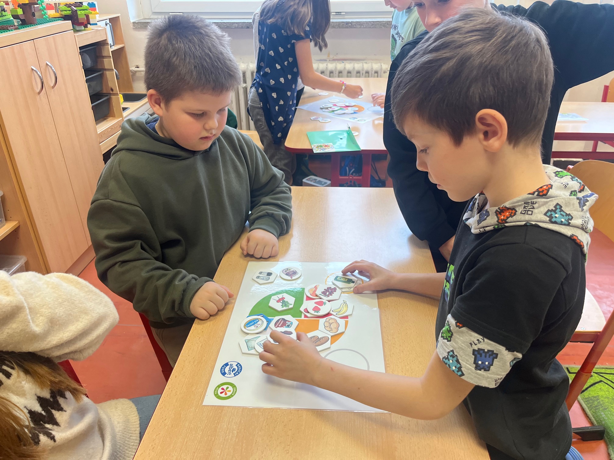 Besední den pokračoval programem Zdravá pětka. O jídle jsme se již bavili mnohokrát, ale dnes jsme se například dozvěděli, že nejvyváženější jídelníček máme ve školní jídelně. To jsme se tedy divili. 🙂 Díky hrám v týmech jsme si ještě více upevnili znalosti o jídle a zdravých potravinách. Že je ořech jako mozek, že krev čistí červená řepa, že…. Kdo by chtěl vědět ještě něco více, může juknout na ZDE.