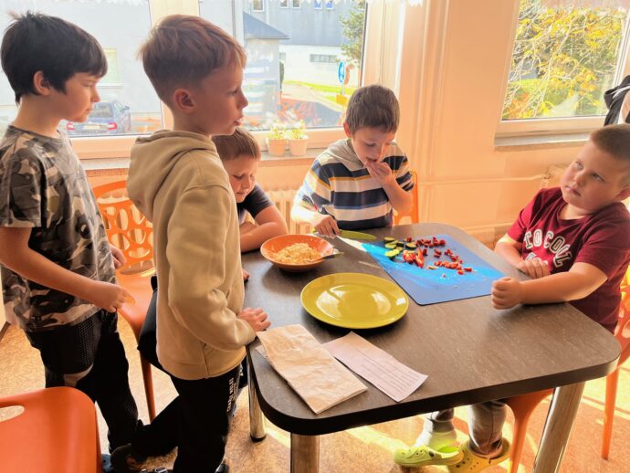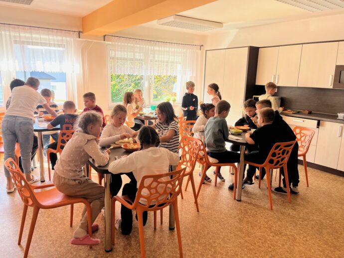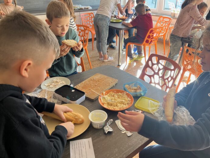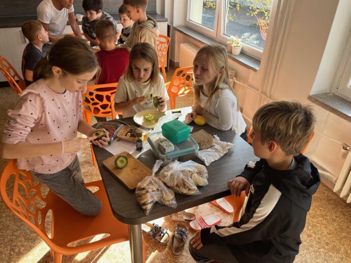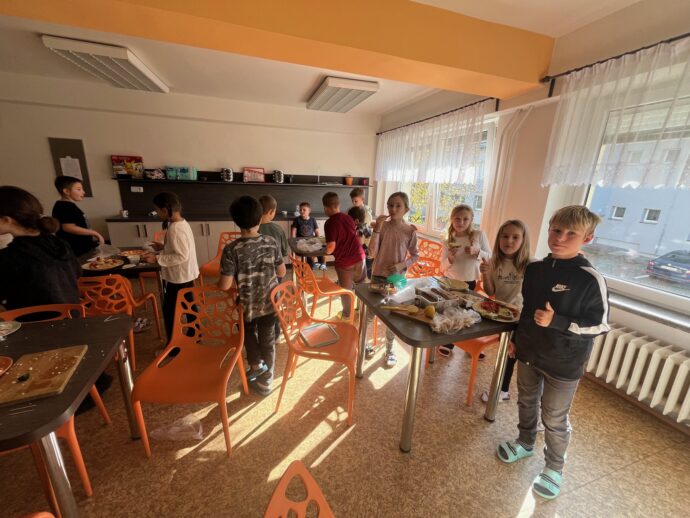 Celý tento týden se věnujeme zdravé výživě. Letos jsme toto téma pojali trochu jinak. Děti si celý týden zaznamenávají, co a kolik vypily. Ve školní kuchyňce jsme si pak připravili vajíčkovou a avokádovou pomazánku. Povedly se na výbornou. 🙂